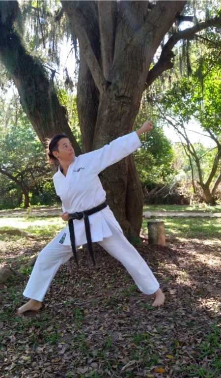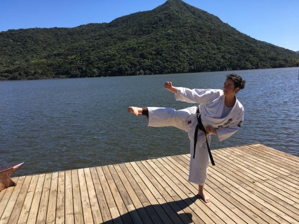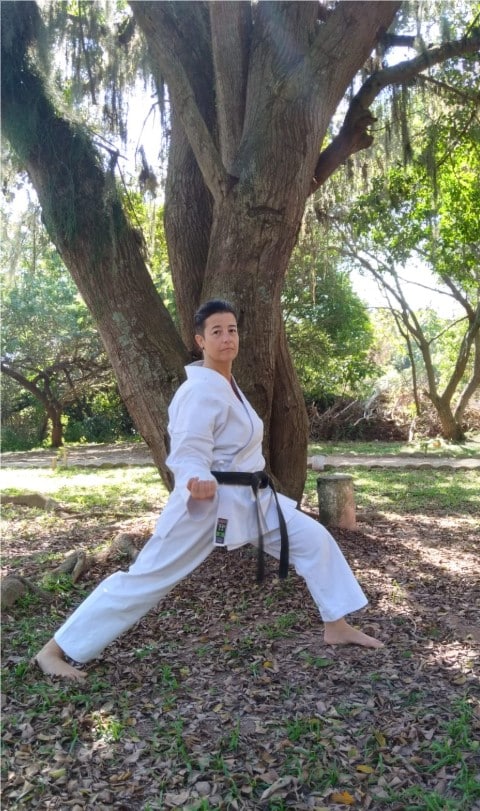 Além das vivências na natureza, a Sensei Renata também conduz treinos tradicionais de Karatê em Dōjō, abertos para iniciantes e praticantes experientes.