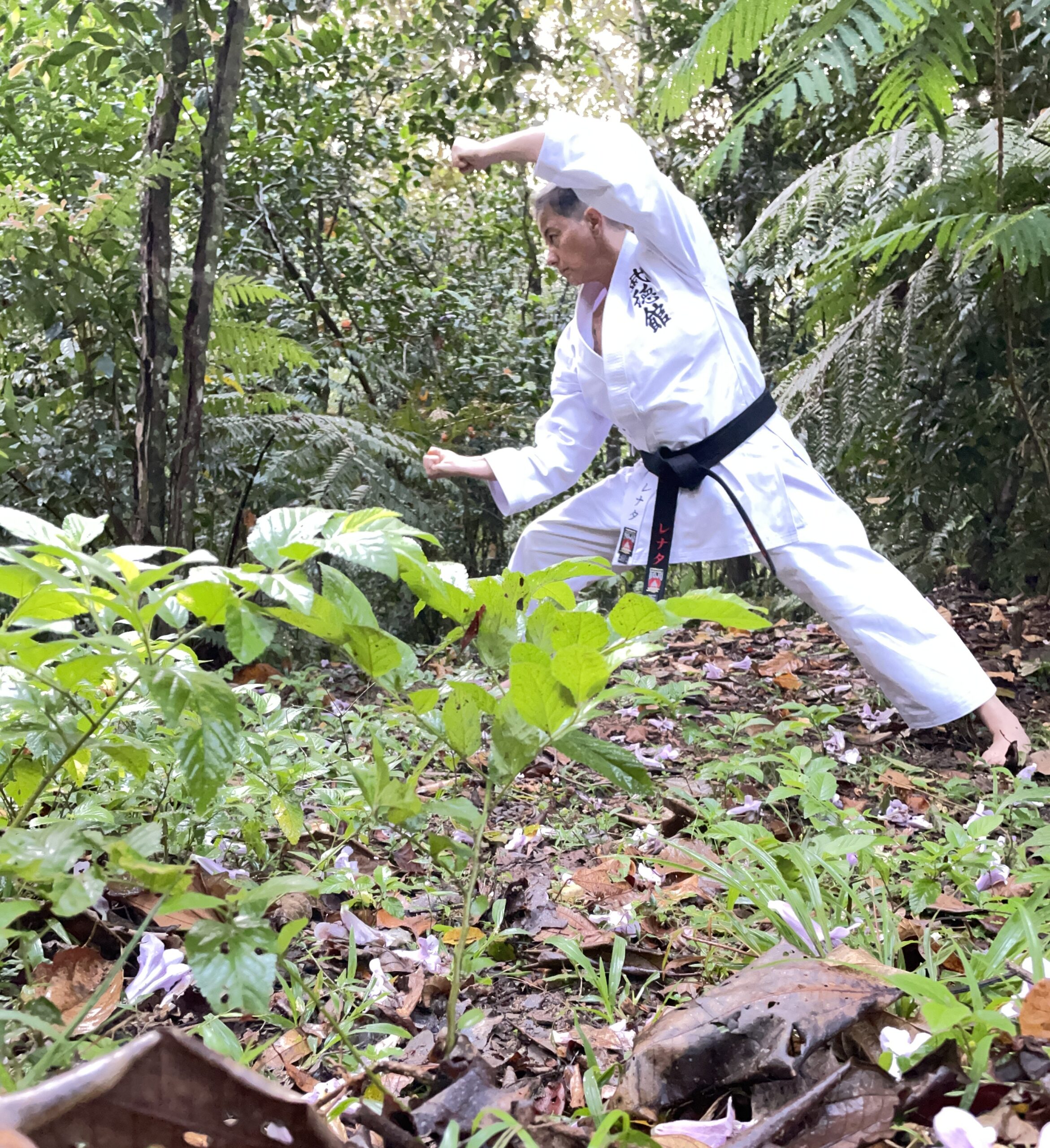 Vivência em meio à Mata Atlântica, integrando silêncio, atenção corporal e técnicas do Karatê.